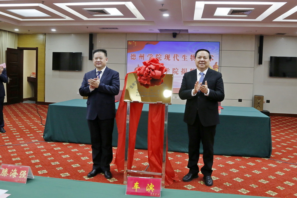 禹城市委书记、德州高新区党工委书记、管委会主任滕海强和车滨共同为“bat365在线唯一官网登录现代生物技术产业学院”揭牌。