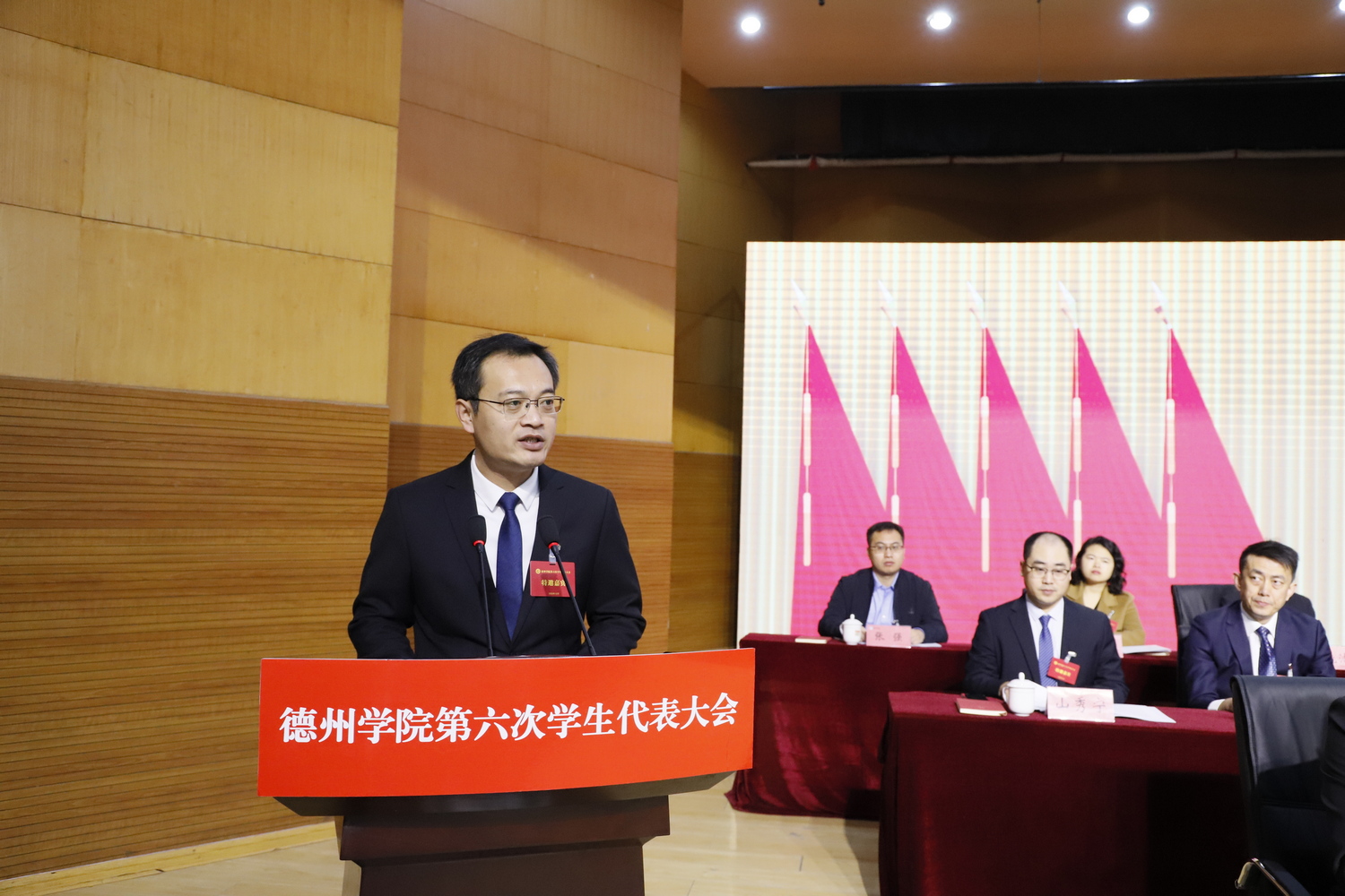 12月10日,bat365在线唯一官网登录第六次学生代表大会在音乐厅召开。党委委员、副校长蒋涛涛,共青团德州市委书记王俊程出席开幕式。