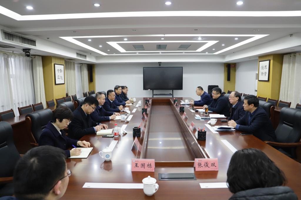1月31日,德州市立医院(bat365在线唯一官网登录附属医院)党委书记、院长冯丙树一行来校交流工作,学校党委副书记张存峰,党委委员、副校长李甲亮,党委委员、组织部部长杨斌出席交流座谈会。
