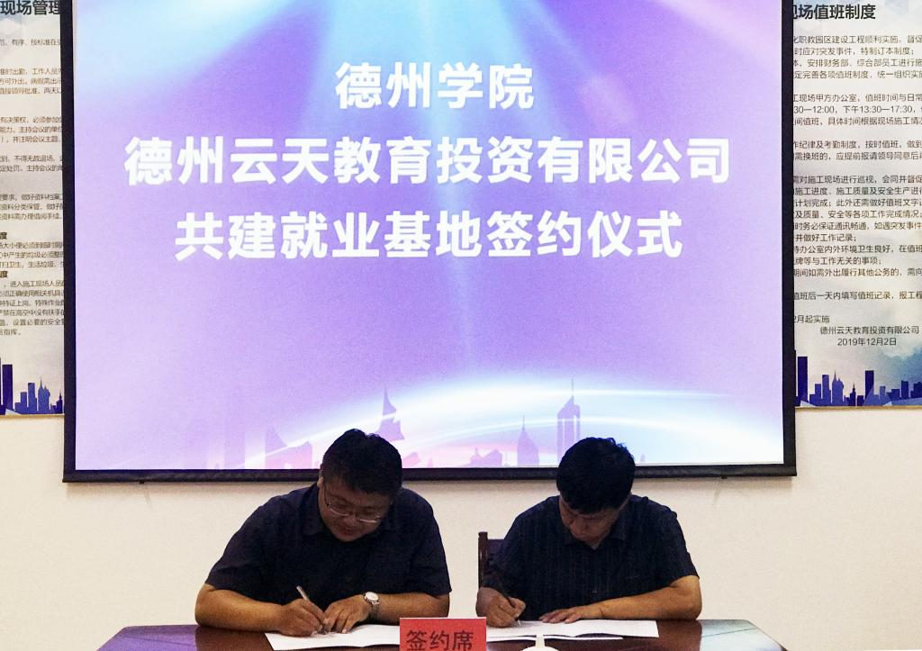 王金利一行参观了校园和教学场地,详细了解了德城创业孵化职教园区和德州云天高级中学的总体规划、建设布局、功能现状及发展前景。马克思主义学院和德州云天高级中学签订就业基地共建协议。