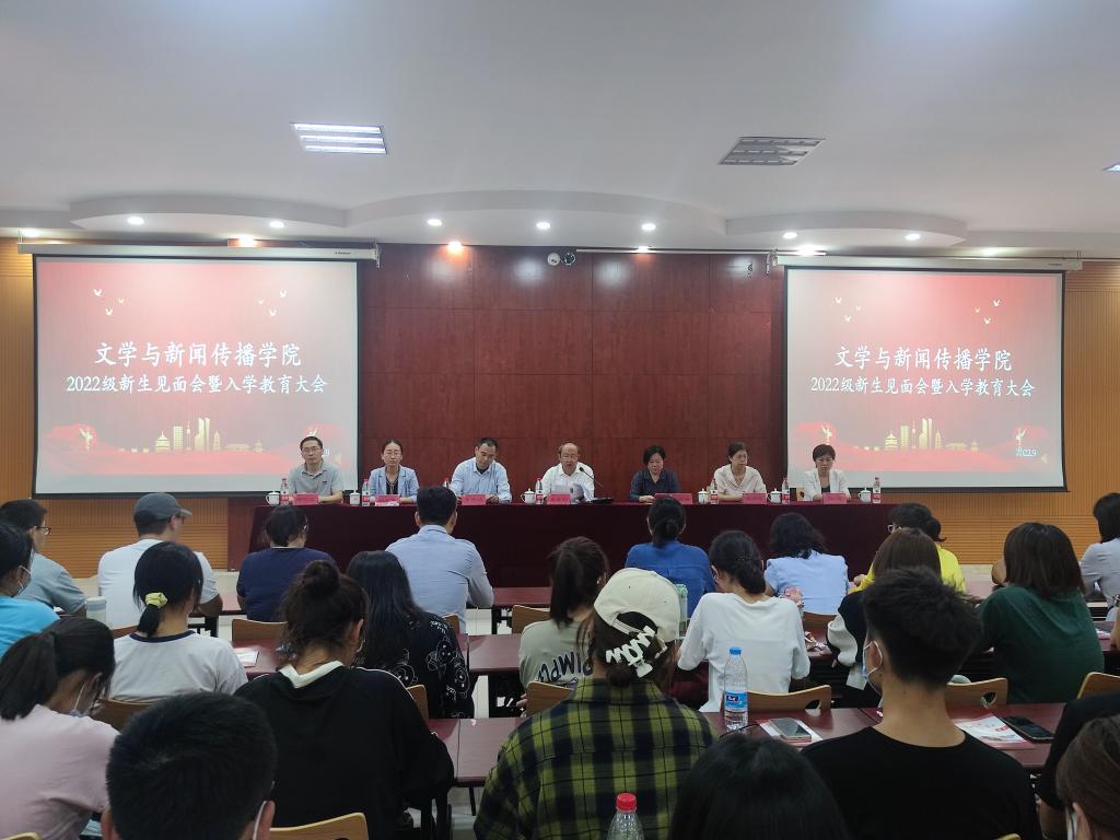 9月30日,文学与新闻传播学院负责人组织召开了2022级新生见面会暨入学教育大会,学校党委副书记王金利出席会议并讲话。王金利在讲话中介绍了学校的基本情况和文学与新闻传播学院近年来取得的成绩,并对2022级新同学的到来表示热烈欢迎和祝贺。他希望同学们尽快完成身份角色的转变,重新认识大学的学习和生活,要有面对艰难困苦、玉汝于成的勇气和决心,要潜心向学,不能浅尝辄止,要持之以恒,不能蜻蜓点水;要以宽阔的胸襟,自强不息的精神,在中华悠久历史文化和人类文明丰富的养分中,涵养品格、提升境界、磨砺意志。学院主要负责人介绍了学院的发展史和基本情况,引导新生畅想大学四年的美好生活,对他们进行了生涯规划教育,引导广大青年学子把自己的人生理想同祖国的前途命运紧密联系在一起,努力成长为德才兼备、全面发展的人才。新生见面会暨入学教育大会结束后,各专业分别开展了新生专业教育,各班级召开了班会,对同学们关心的专业学习和生活等问题进行了沟通交流。接下来,文学与新闻传播学院还会通过座谈报告、主题班会等方式开展新生入学教育,引导同学们坚定理想信念,养成良好学风,勇于拼搏奋斗,走好成长成才的每一步。文学与新闻传播学院领导班子成员、教师代表、2022级全体新生参加了会议。(文学院)