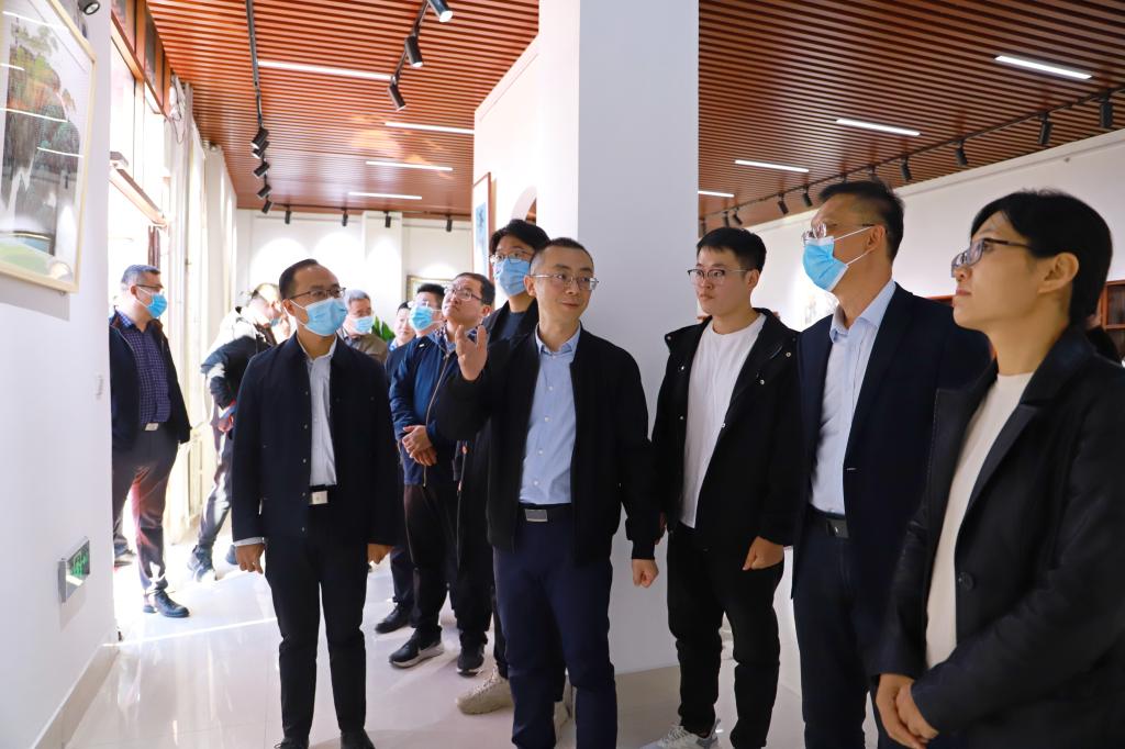 张方瑞一行走访调研艺术中心创新基地、纺织服装学院大学生创新创业基地、直播电商创业孵化基地、数智城市数据服务有限公司和大学生活动中心,详细了解各处的发展现状,参观美术学院“喜迎二十大”廉洁书画展,并在大学生活动中心开展座谈交流活动。