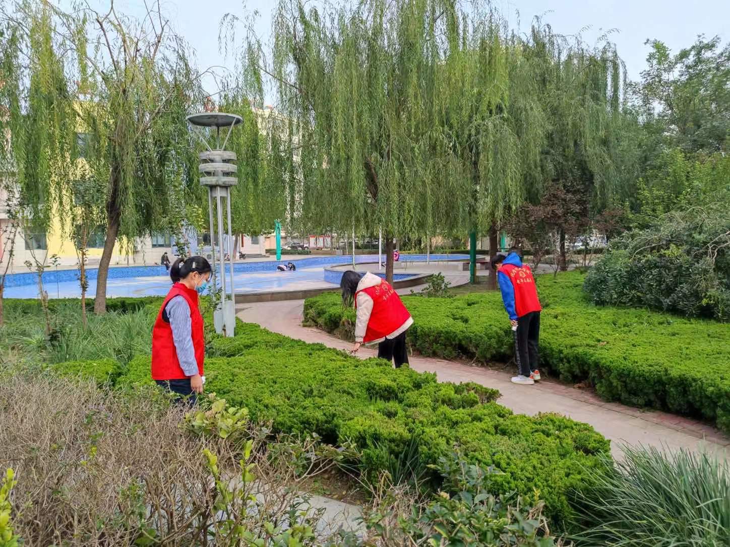 在此次校园清扫活动中,志愿者们身着红色马甲,出现在校园的各个角落。志愿者们认真清扫校园内的枯枝落叶、杂草杂物,以及花坛里的烟头纸屑。志愿者们不怕脏,不怕累,为校园整洁明亮的环境辛勤劳动,挥酒着自己的汗水。活动结束后,志愿者们将垃圾装运丢弃至垃圾桶,并将清扫工具放至原处。