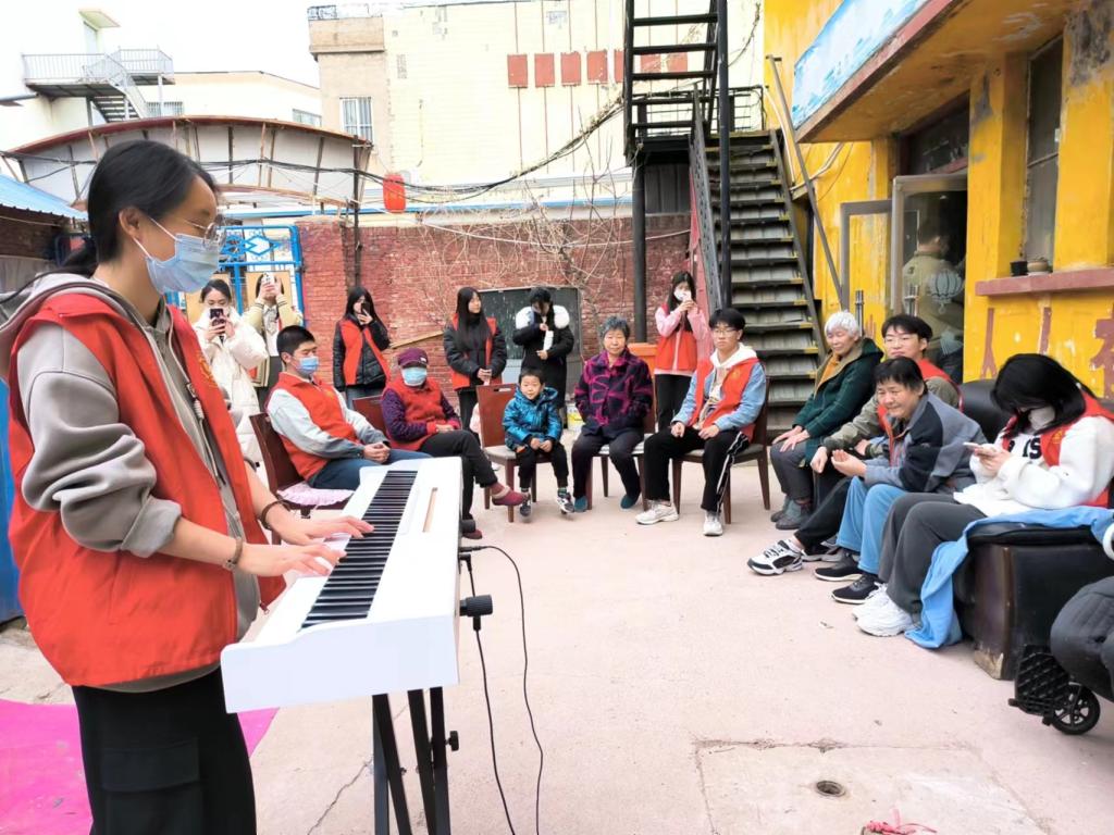 在特殊学校教室里,志愿者结合自身专业优势对特殊儿童开展声乐、乐器、舞蹈等教学。孩子们小心翼翼地摸着琴键,用手触碰一张张乐谱,用心倾听音符的跳动,感受音乐带来的魅力。随后,志愿者给孩子们讲故事,参与劳动,走进他们,倾听他们的心声,鼓励他们坚强,健康成长。