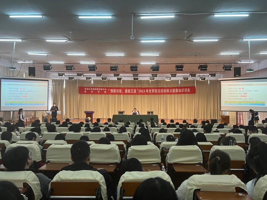 为深入贯彻党的二十大精神,呼吁社会各界共同终结结核病流行,维护人民群众身体健康 。3月15日下午,在2023年“3.24世界结核病防治日”到来之际,bat365在线唯一官网登录联合区疾控中心举办了“预防结核,遏制艾滋”健康教育宣传活动,活动由医药与护理学院承办。省疾控中心副主任康殿民、bat365在线唯一官网登录党委委员、副校长张存峰、德城区副区长刘桂芝、德城区卫健局、疾控中心负责人以及学校后勤处、校团委、医药与护理学院负责人、师生共计500余人参加活动。