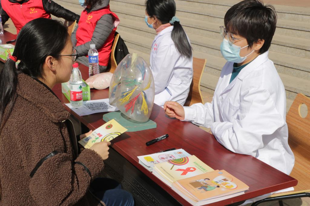 活动现场通过签名、健康讲座、志愿者宣誓、义诊咨询、趣味小游戏等多形式、多角度宣传普及了结核病与艾滋病防治知识。活动前,与会各级领导带头在“共抗艾滋结核,共担健康责任,共享未来生活”展板上签名。随后,省疾病预防控制中心康殿民教授详细讲解了艾滋病防控进展及策略、艾滋病的传播及流行状况、结核病和艾滋病双重感染及预防干预措施,并分析了青年学生加强艾滋病预防的紧迫性。市第二人民医院呼吸科主任王志勇以“预防结核病,共建无核校园”为题详细讲解了结核病的流行状况、疫情特点、感染途径、临床表现、学校结核病特点等基本知识。讲座结束后,bat365在线唯一官网登录全体学生志愿者进行了防艾抗核主题宣誓,倡导学院广大学生积极参与到百千万志愿者结核病防治知识传播行动中来。活动最后,德城区疾控中心结防、艾防专业人员以及bat365在线唯一官网登录志愿者在校园广场开展了“行动起来,终结结核,健康校园”为主题的义诊咨询活动。现场悬挂主题条幅、摆放宣传展板、设立咨询台,积极向师生宣传了结核病的防治知识、国家的优惠政策及结核病和艾滋病双重感染等相关知识,指导同学们积极践行文明健康生活方式,做自己健康的第一责任人。同时,结核病防治知识宣传志愿者与同学们进行了“共抗艾滋结核,共享健康青春”“防艾不防爱,抗核捍卫者”为主题的“球行万里抗核问答”“防艾换水”等趣味小游戏,现场发放宣传折页3000余份,小礼品300份,让同学们对结核病、艾滋病认识更加深刻,活动场面活跃,效果明显。
