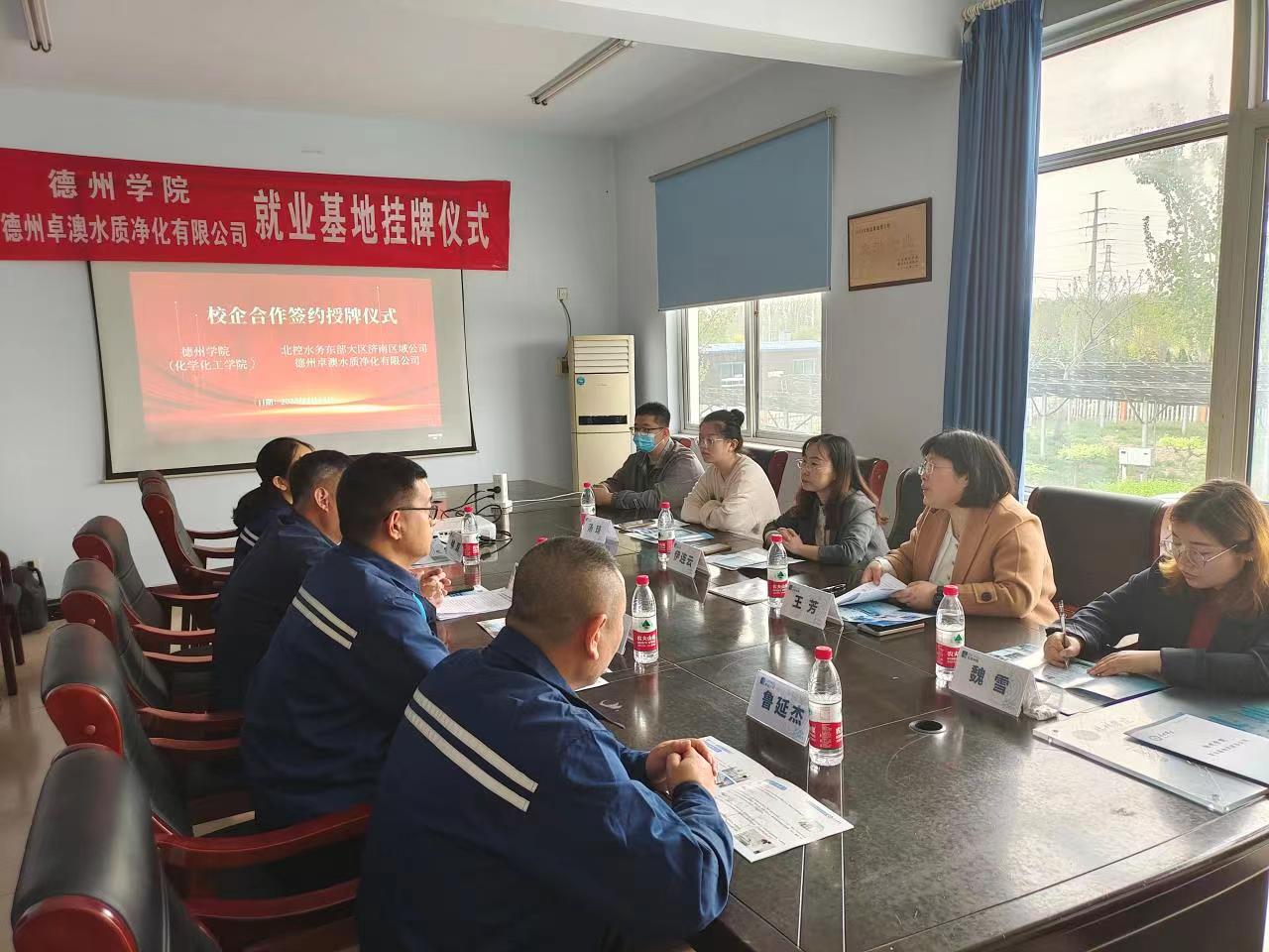 4月14日,化学化工学院深入开展“访企拓岗”促就业系列活动,与德州卓澳水质净化有限公司举办就业基地挂牌仪式。化学化工学院党委书记、系主任、辅导员,德州卓澳水质净化有限公司总经理等相关负责人参加仪式。仪式上,公司总经理详细介绍了公司发展历程,工业废水、生活废水的处理流程及公司发展战略,希望能够加强校企合作,织就“共生共赢”网。化学化工学院党委书记就学院的师资力量、人才培养模式、学生就业工作、科研情况做了详细介绍。双方一致认为,要将学校基础研究的优势与企业科技创新活力相结合,在高层次人才共享、联合研发平台建设以及学生就业等方面开展深度合作,共同服务地方经济社会发展。随后,双方签订《bat365在线唯一官网登录就业基地共建协议书》《实习实训基地协议书》,并进行授牌。下一步,校企双方将深入探索合作新领域、新途径,促进水资源循环利用,发展水生态环境保护事业,为德州市经济社会的和谐发展贡献力量。