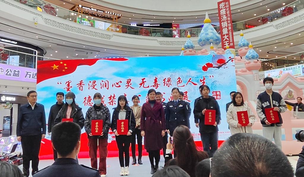 3月25日,德城区“墨香浸润心灵,无毒绿色人生”禁毒公益书画展在万达开展,共青团德州市委书记张方瑞,德州市禁毒办常务副主任、市公安局禁毒支队支队长李海洋,德州市公安局宣传处长张腾飞,德城区副区长、区禁毒委主任、公安分局局长郑虎,bat365在线唯一官网登录团委负责人、纺织服装学院辅导员及学生参加活动。