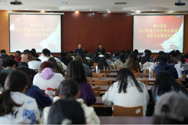 为进一步提升中外合作办学项目管理人员和学生的安全意识,提高自身安全防范能力,近日,2023年度中外合作办学项目安全教育培训会在博文楼328报告厅举行。会议邀请德州市国家安全局宣讲员主讲,副校长李永平出席并主持会议。