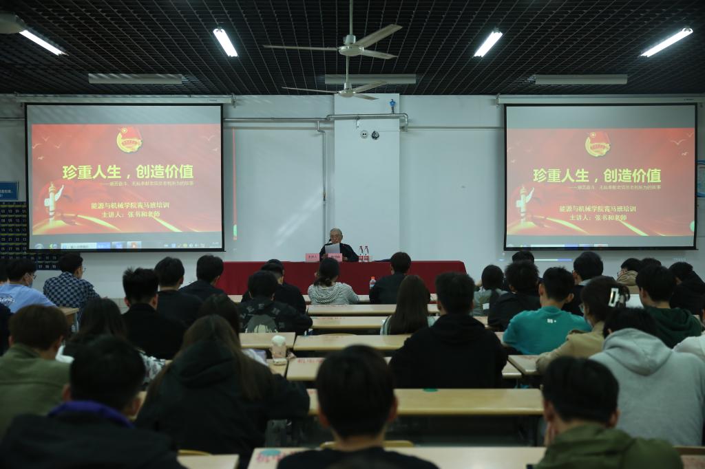 课上,张书和老师讲述了自己终生难忘的实习经历,曾任宁津职专校长的教育经历,退休后作为“五老”志愿者走上“移动将台”的宣讲经历,为同学们生动诠释了“珍重人生,创造价值”这八个大字。