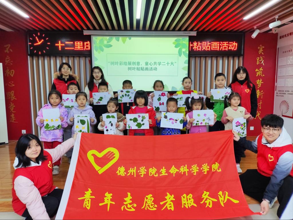 4月22日,为深入学习贯彻党的二十大精神,激发青少年的思维想象力和实践创造力,生命科学学院联合宋官屯街道办事处开展“青春学习二十大,致敬百年绘风华”树叶粘贴画活动。