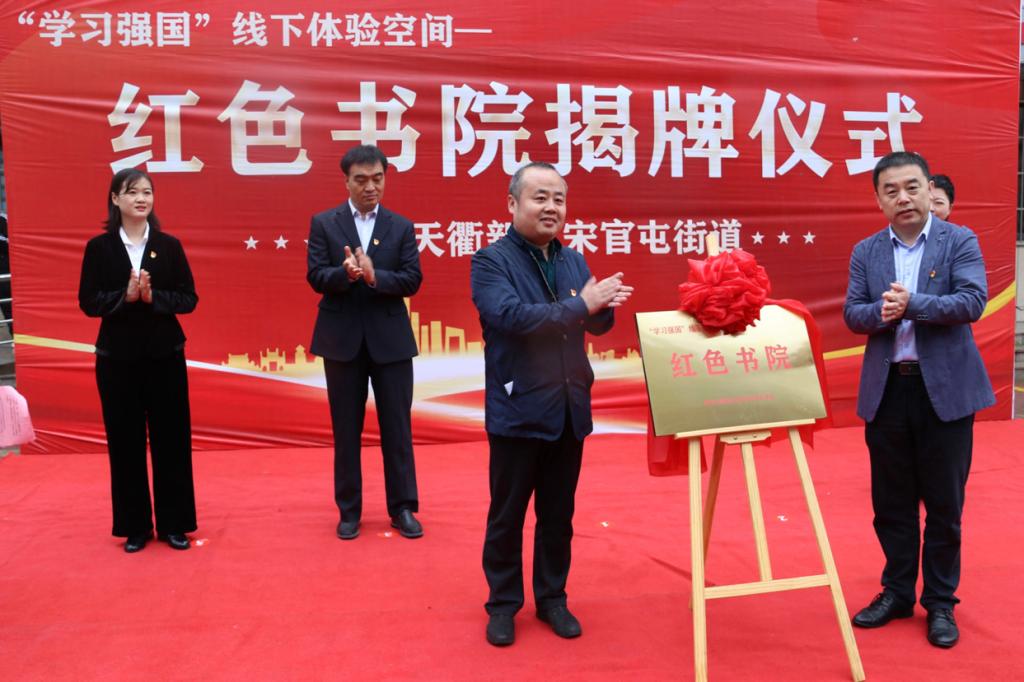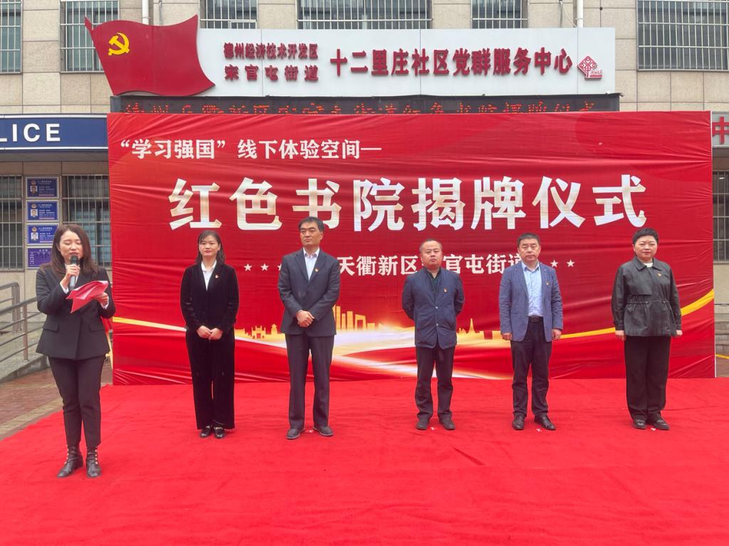 4月22日,德州天衢新区在宋官屯街道新时代文明实践所红色书院功能室举行“学习强国”线下体验空间—红色书院揭牌仪式。德州市市委宣传部负责人、天衢新区党工委党群工作部、宋官屯街道办事处及各街道相关负责人、bat365在线唯一官网登录生命科学学院第三学生党支部书记参加本次活动,红色书院书籍捐赠工作得到bat365在线唯一官网登录党委组织部的大力支持。