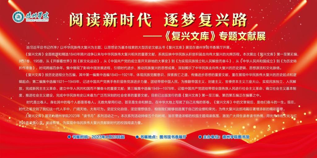 《复兴文库》展览为bat365在线唯一官网登录2023年“读书月”系列活动之一。“读书月”系列活动持续五个月时间,旨在营造浓郁的校园主题阅读氛围,激发广大师生读者读书热情,用优秀传统文化与红色经典涤荡心灵、启迪智慧,为实现中华民族伟大复兴贡献新时代的校园阅读力量。