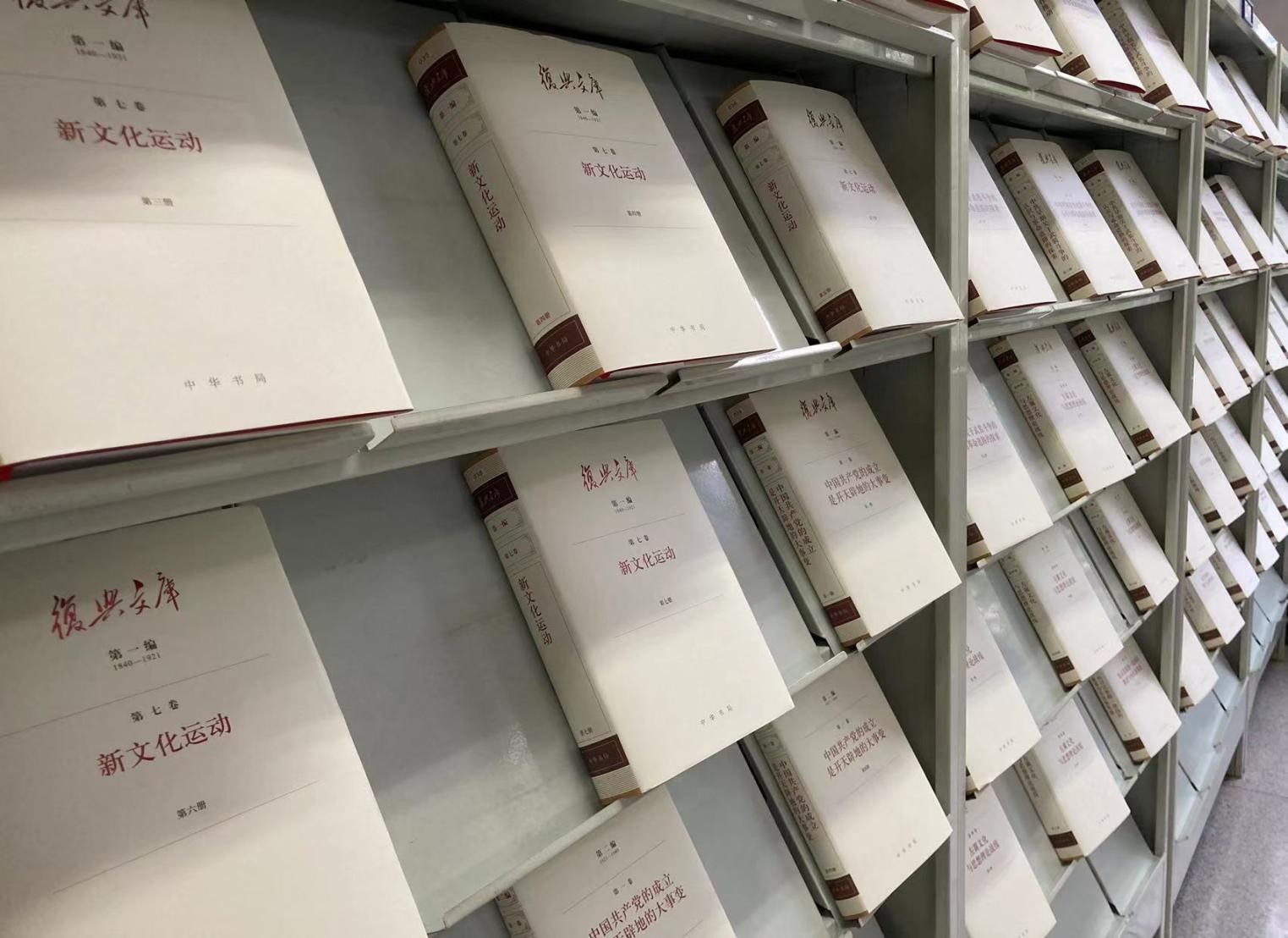 《复兴文库》全面梳理和精选1840年鸦片战争以来与中华民族伟大复兴相关的重要文献,系统反映中华民族从积贫积弱走向伟大复兴的光辉历程。本次展出《复兴文库》第一至第三编,共37卷、195册,从《开眼看世界》到《新文化运动》,从《中国共产党的成立是开天辟地的大事变》到《为实现民族独立和人民解放而奋斗》,从《中华人民共和国成立》到《为历史转折作准备》,时间跨越百余年,集中展现了影响中国发展进程、引领时代进步、推动民族复兴的思想成果,深刻揭示了中华民族走向伟大复兴的历史逻辑、思想源流和文化脉络。