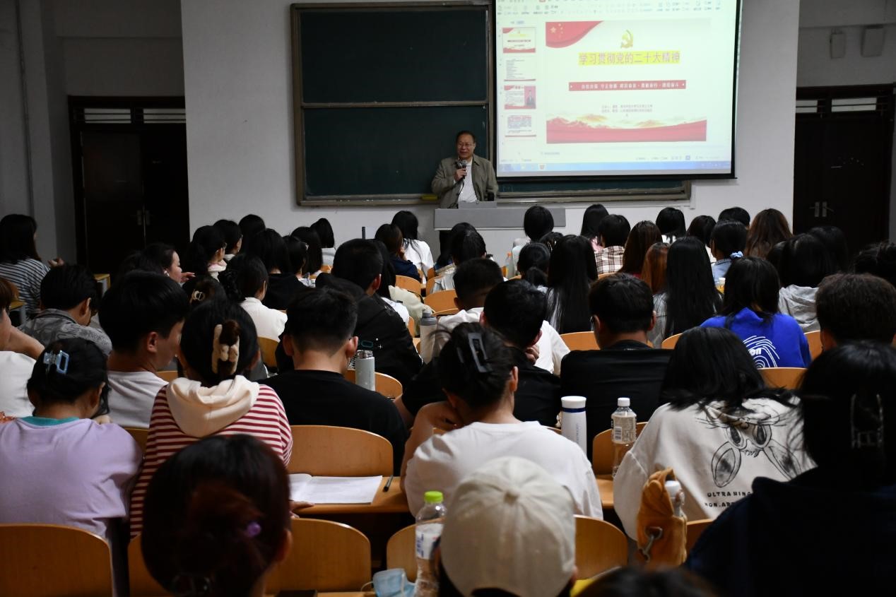 仪式结束后,曹胜为马克思主义学院学生作了《学习宣传贯彻党的二十大精神》的宣讲报告。