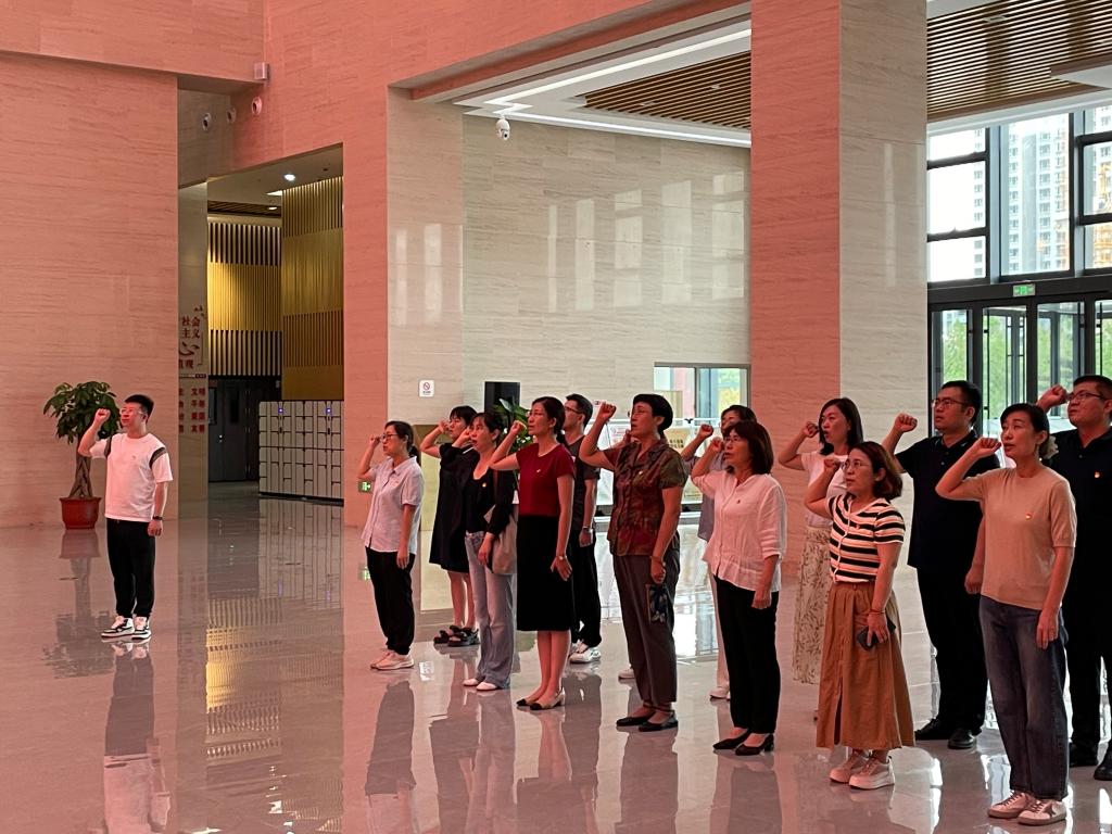 参观结束后,党员教师参与重温入党誓词活动。通过面对党旗庄严宣誓,老师们表示将践行入党誓词,坚定理想信念,继承党的优良传统,以更加强烈的使命担当奉献于工作当中。
