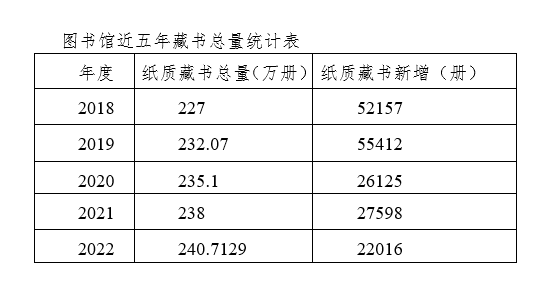 图书馆近五年藏书总量统计表