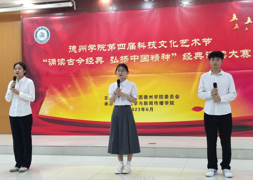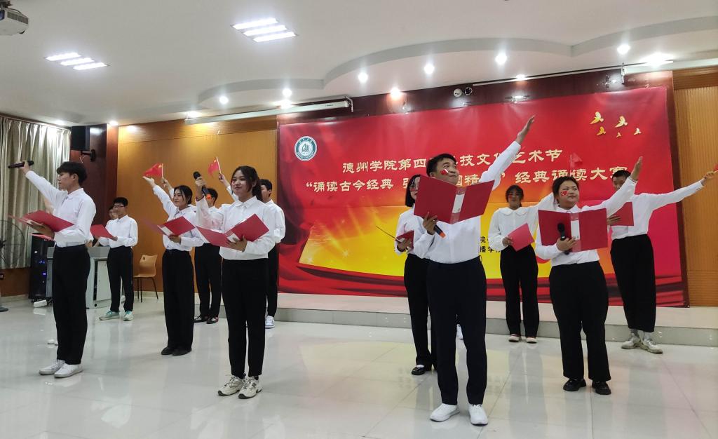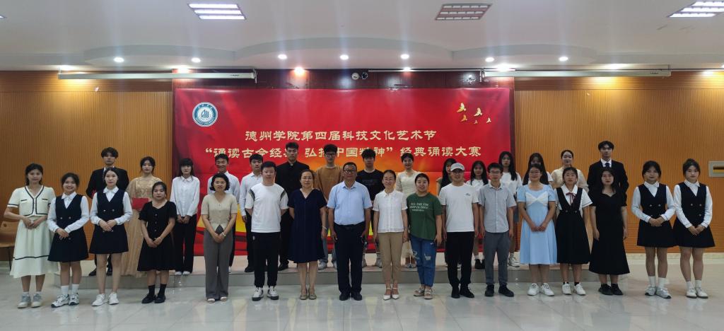 本次经典诵读大赛由校团委主办,文学与新闻传播学院承办,是bat365第四届科技文化艺术节的一项活动。德院师生从诗歌中学习中华文化,从历史中汲取精神力量,砥砺前行再出发。校团委相关负责人、文学与新闻传播学院班子成员、参演学院的师生代表参加了本次活动。