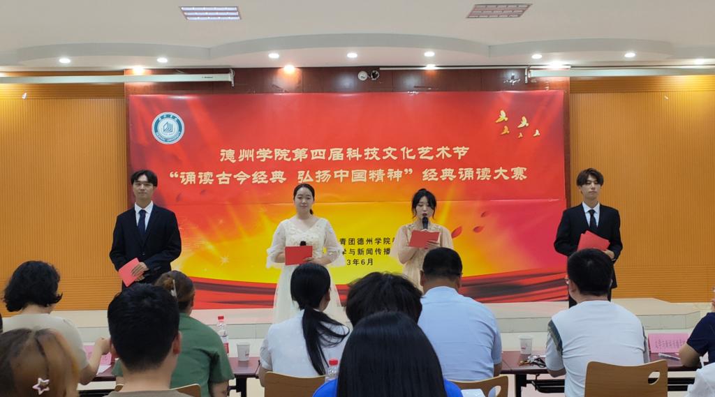 为贯彻落实习近平总书记在文化传承发展座谈会上的重要讲话精神,引领青年学生亲近中华经典,传承弘扬中华优秀传统文化,激励青年学生坚定文化自信,坚定理想信念,在全校形成学习、传承中华文化的浓厚氛围,6月15日晚,学校在博文楼报告厅举办“诵读古今经典 弘扬中国精神”经典诵读大赛。
