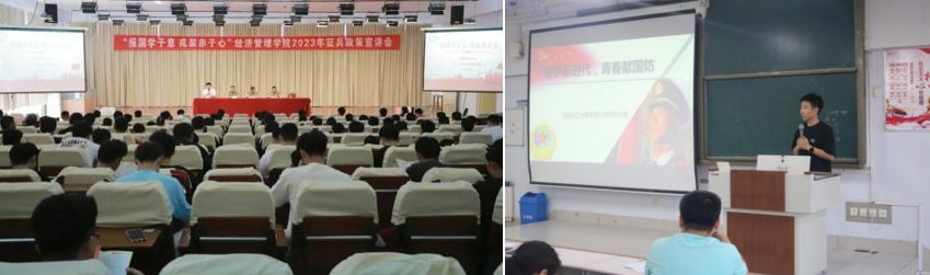 莘莘学子携笔从戎,参军报国建功立业。各学院加强对毕业生应征入伍工作的宣传力度,鼓励毕业生到部队锻炼成长成才,报效祖国。经济管理学院举办“报国学子意