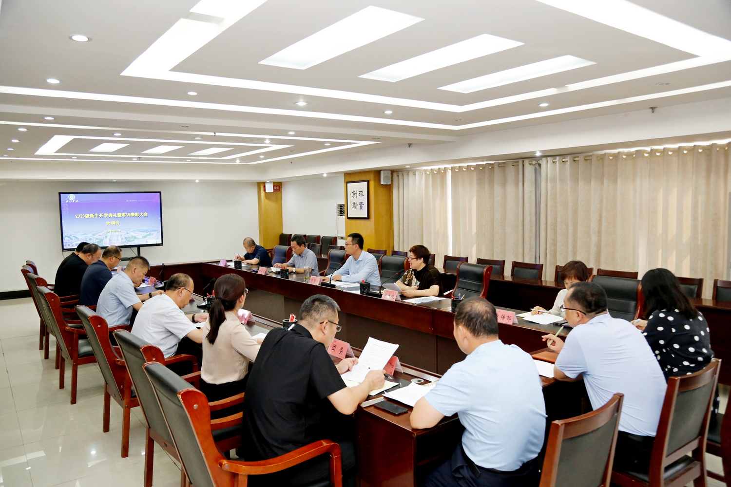 会上,学生处负责人对2023级新生开学典礼暨军训表彰大会工作方案进行了详细介绍,安排了相关工作,与会各部门就工作相关事宜进行交流。