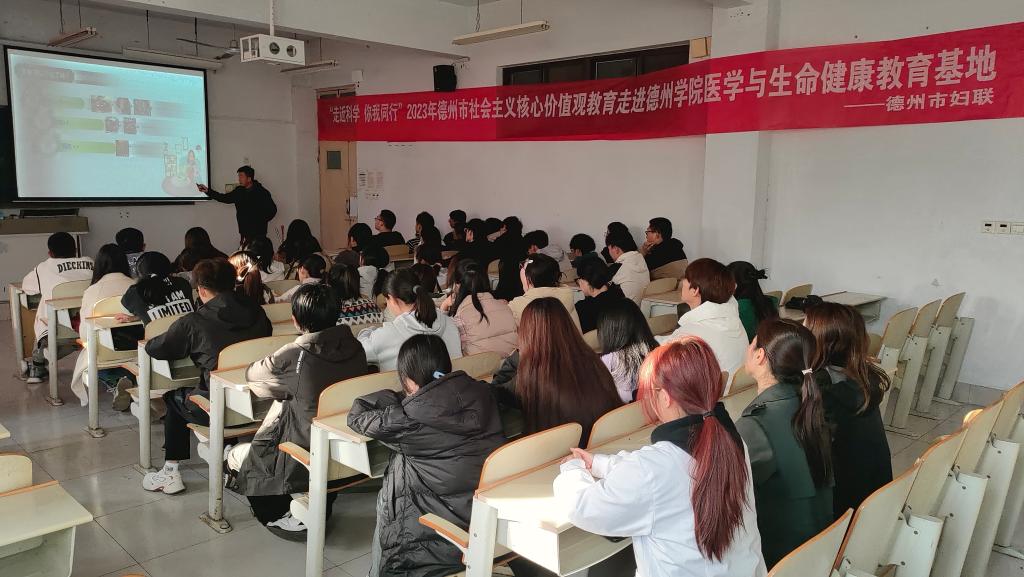 11月7日下午,德州市妇联到访医药与护理学院德州科普专家工作室,开展2023年德州市社会主义核心价值观教育活动。德州市妇联工作人员、医药与护理学院师生、资源与环境学院师生等百余人参加活动。