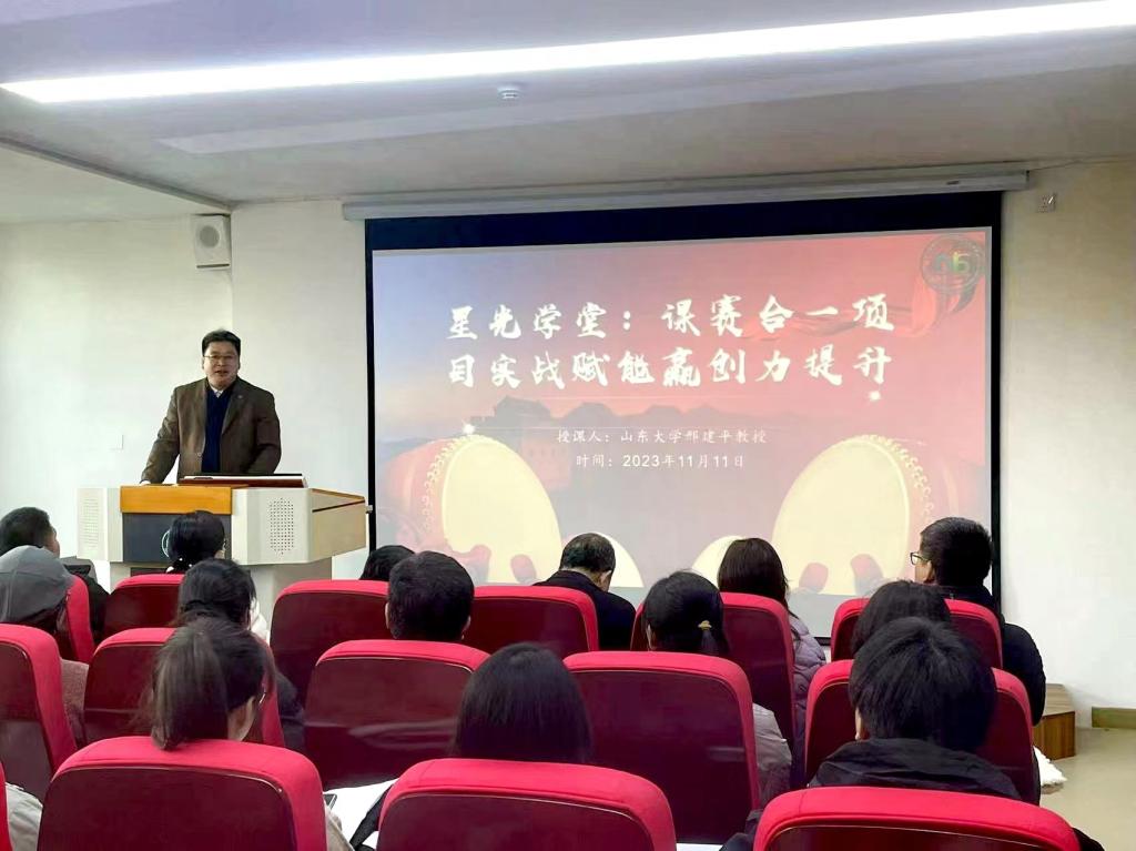 11月11日下午,bat365邀请山东大学特聘教授、国家级教学名师、创新创业学院执行院长邢建平教授在健行楼215为bat365师生举办了一场题为“星光学堂:课赛合一项目实战赋能赢创力提升”的创新创业教育专题讲座。bat365师生代表100余人聆听了讲座。
