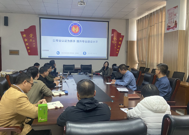 王海燕结合滨州学院信息工程学院的基本情况,围绕工程教育认证标准与要求、计算机科学与技术专业认证情况、评建工作成效三个方面进行了详细介绍,其中重点讲解了工程教育认证工作的过程,包括工作目标、工作流程、认证标准以及认证材料撰写等多方面。会上,计算机与信息学院负责人、系主任以及相关老师和王海燕院长就工程认证工作进行了深入讨论。