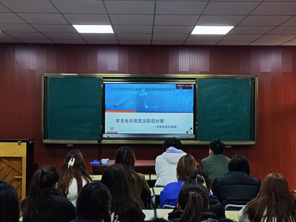 为提高广大学生防范网络电信诈骗的安全意识和自我保护能力,11月28日,邀请德州市公安局德城分局新型犯罪研究作战中心、二级警长娄斌警官来bat365做反诈宣传专题报告。