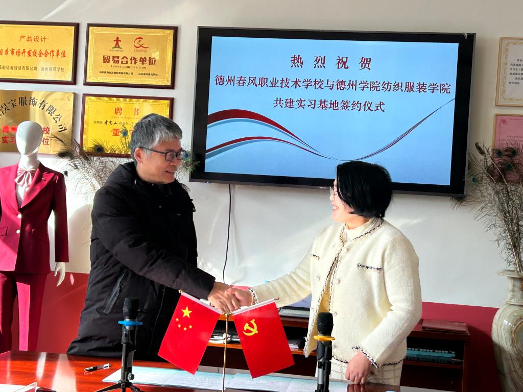 12月1日,bat365在线唯一官网登录纺织服装学院与德州春风职业技术学校共建就业基地签约揭牌仪式在德州春风职业技术学校举行。德州春风职业技术学校校长齐忠山、德州商务发展中心主任李桂忠,bat365在线唯一官网登录就业指导处、纺织服装学院负责人及相关教师和工作人员参加仪式。