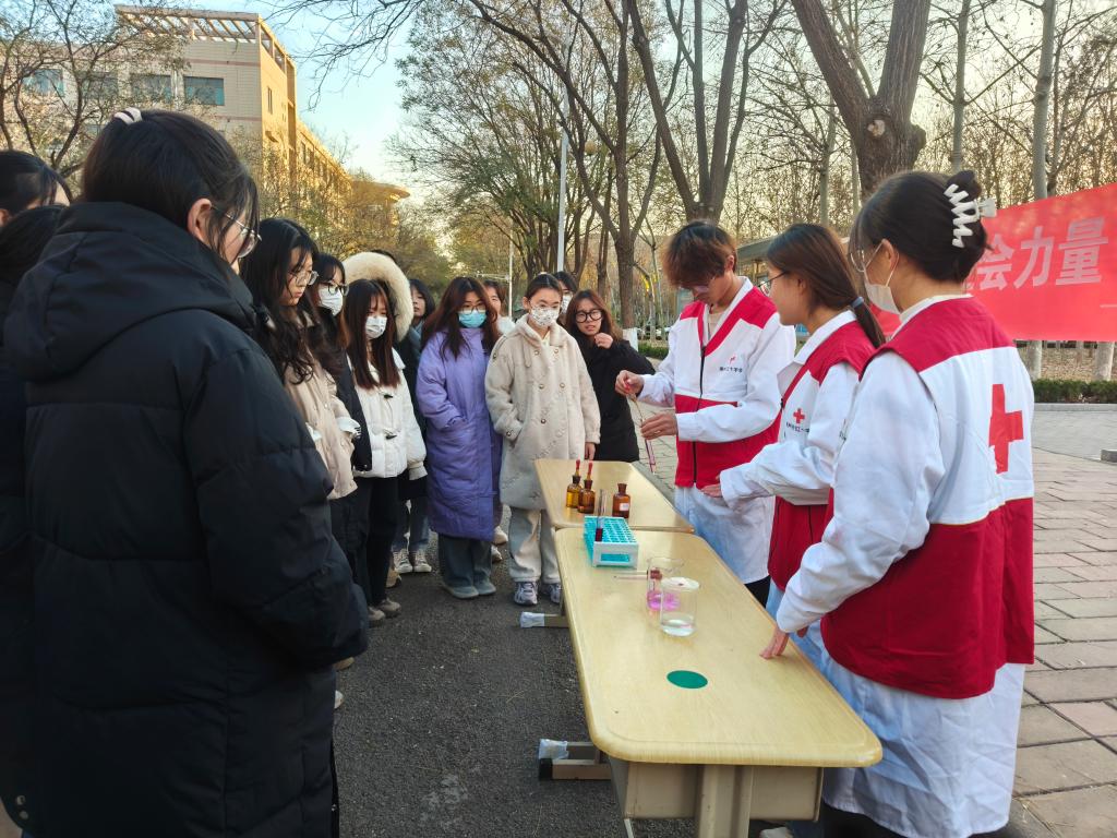 志愿者们利用碳酸钠遇酚酞的变色原理,为同学们演示了模拟艾滋病传播的“变色实验”,形象地展现了艾滋病的特点传播迅速和预防艾滋病的重要性。实验结束后,同学们参加了“青春红丝带,防‘At’守护爱”主题宣讲,志愿者就艾滋病的概念、危害、传播途径和预防措施四个方面进行讲解,引导同学们全面认识艾滋病的危害,加强自我防护意识和防艾技能。