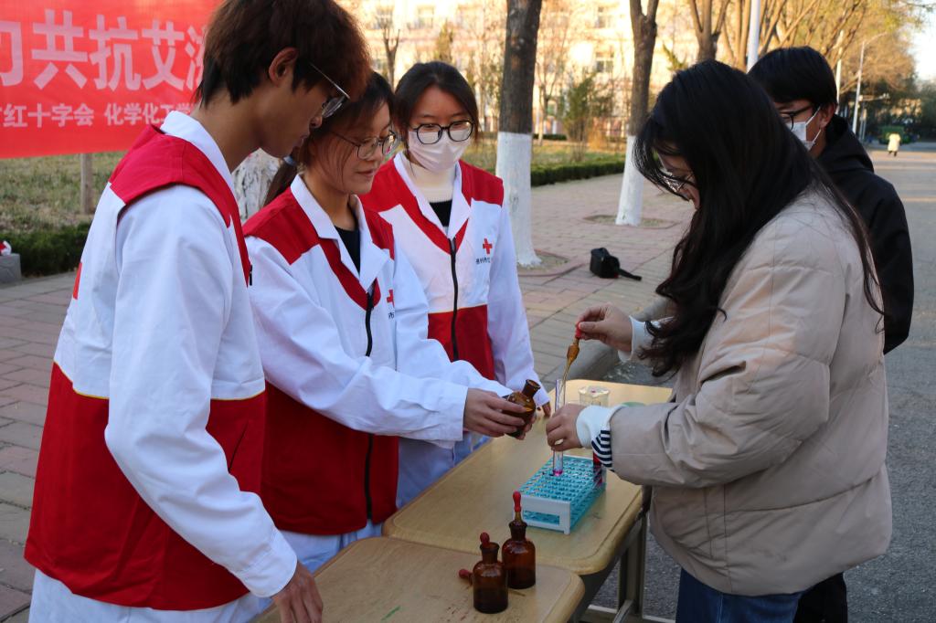 为认真贯彻落实党的二十大精神,助力健康中国建设,持续营造全社会参与艾滋病防治工作的良好氛围,11月30日,化学化工学院红十字志愿服务队于求实楼开展“青春红丝带,防‘At’守护爱”主题活动。