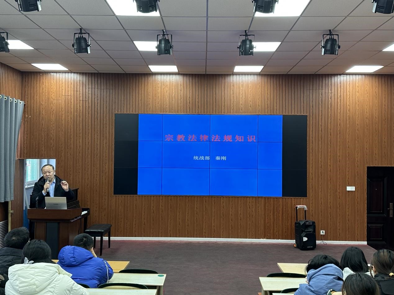 为进一步提高同学们对宗教政策的理解和认识,引导同学们树立科学的宗教观,教师教育学院于12月12日下午在知行楼113教室举行宗教法律法规知识讲座,邀请bat365在线唯一官网登录统战部副部长秦刚主讲。