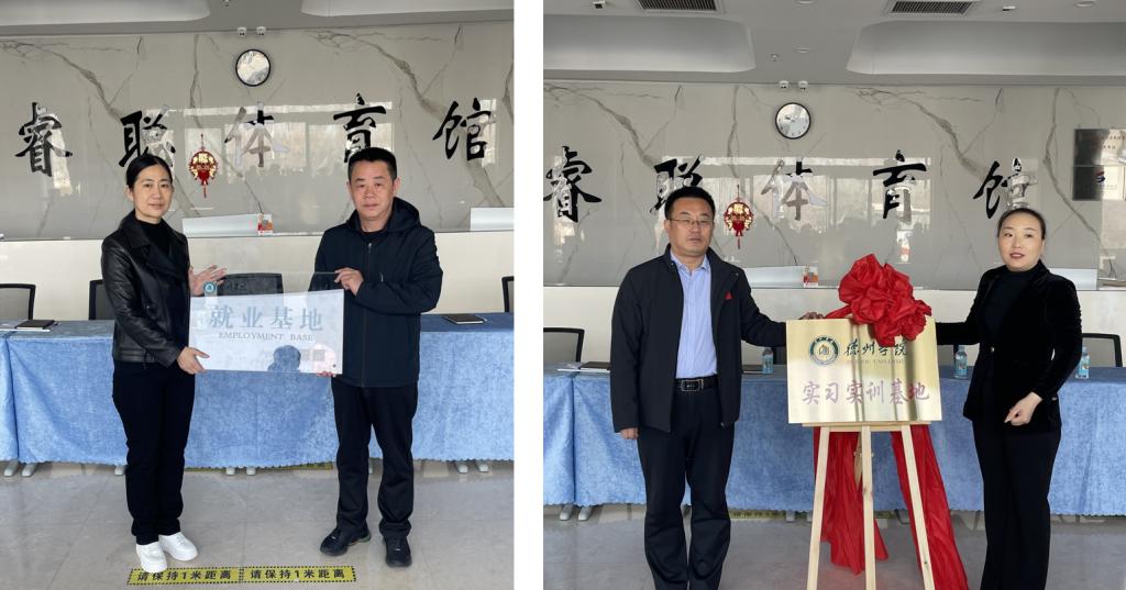 在睿健健康产业(山东)有限责任公司,总经理李娜对公司的基本概况、发展前景、企业文化等作了介绍。学院主要负责人介绍了学院基本情况、办学特色、人才培养成果、校企合作模式和2024届毕业生相关情况,校企双方就实习实训就业、学生就业、课程设置、人才培养模式改革等方面进行了深入交流,双方一致同意进一步深化合作,发挥校企双方优势,提升人才培养质量,共同培养创新性、应用型体育人才,实现合作共赢。随后,体育学院党委负责人代表学校与企业签订了就业基地建设协议书并举行授牌仪式,体育学院行政负责人代表学校与企业签订“实习实践基地”建设协议书并进行授牌仪式。