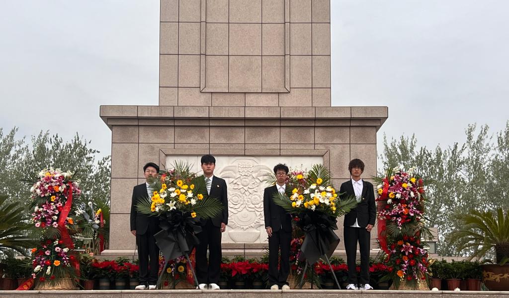 同学们在人民英雄纪念碑前肃立默哀,表达对先烈的无尽哀思和崇高敬意。