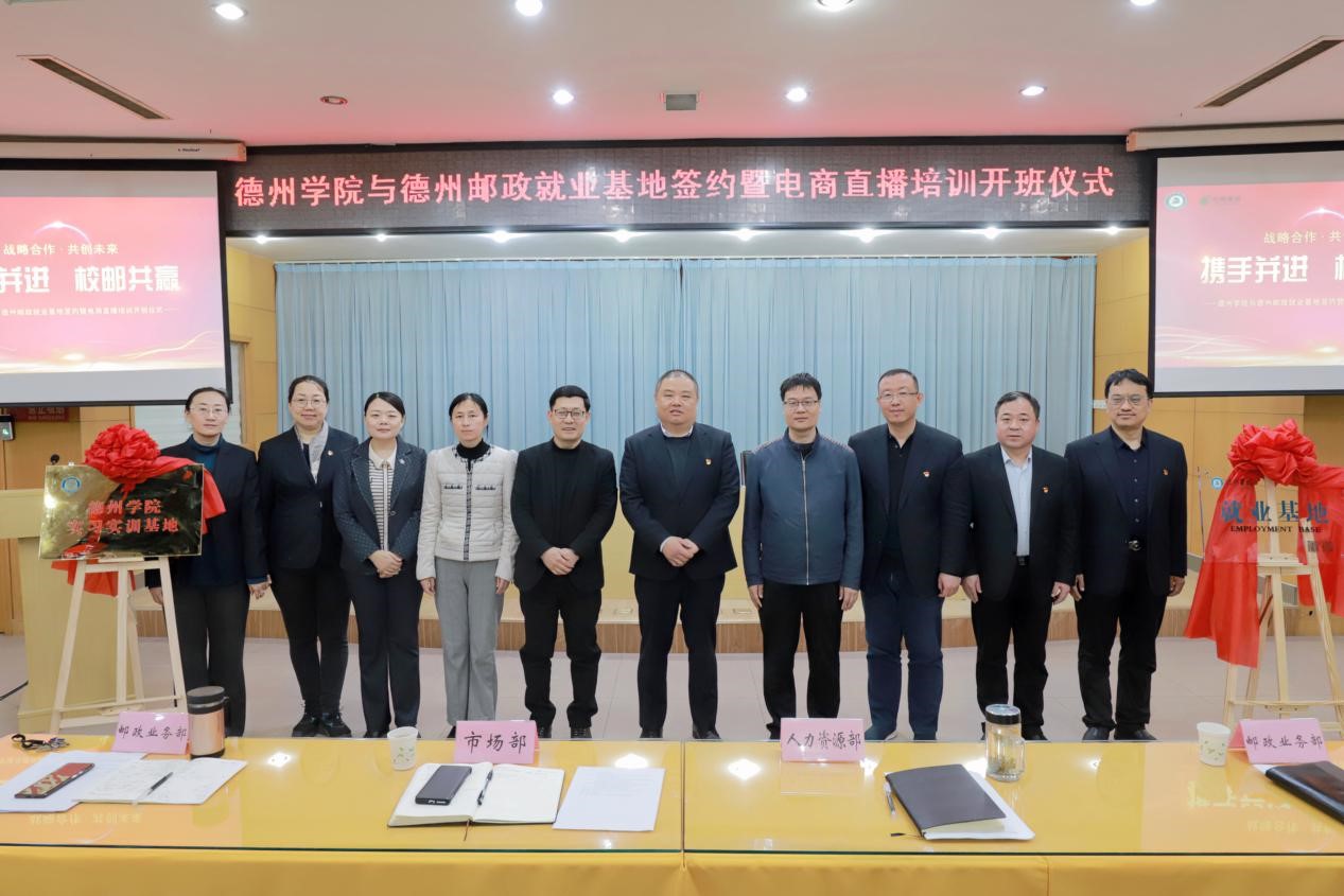 为认真贯彻落实党的二十大精神,深化校企合作,促进产教研融合,扎实开展好就业育人工作,鼓励更多的德院学子扎根德州、服务德州。4月3日,经济管理学院与中国邮政集团公司德州分公司举办“bat365在线唯一官网登录就业基地、实习实训基地”签约揭牌暨“电商直播培训”开班仪式。学院相关负责人、邮政公司负责人、各部门负责人、电商班学员代表100余人参加了此次活动。