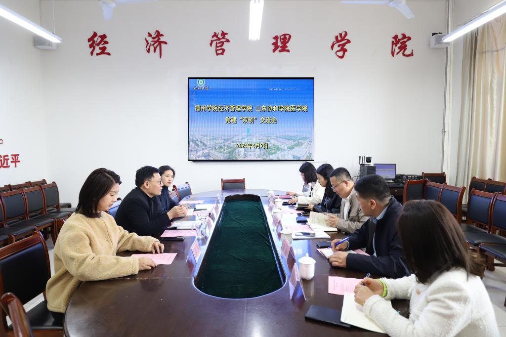 经济管理学院党委对山东协和学院医学院到来表示欢迎,并对经济管理学院“一融双高”和党建“双创”工作进行了介绍。会上,经济管理学院负责人对照申报条件、建设标准,就全国高校党建工作样板支部如何申报、建设心得、特色做法、验收工作、资料准备等方面做了详细说明。双方表示要以此次交流为契机,今后加强在学生创新创业、“一站式”服务中心等方面的沟通,推进党建与业务融合,强化育人载体建设,提升党建工作水平和立德树人实效。