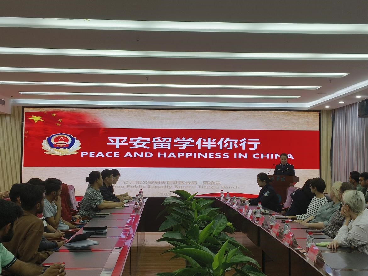 为进一步加强bat365留学生管理,增强留学生群体遵纪守法意识,营造和谐平安的校园环境,4月16日下午,国际教育学院为在校留学生组织开展了法律法规与校纪校规宣讲会。本次宣讲会邀请到了来自德州市入出境管理支队的三位民警,向bat365留学生进行法律宣讲。国际教育学院教师代表为留学生进行了校规校纪教育,bat365外籍教师代表以及全体2024年春季学期留学生新生参加了本次宣讲会。
