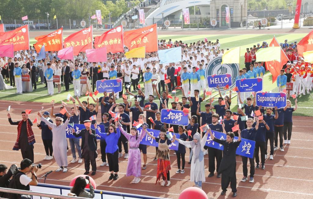 4月25日上午,bat3652024年田径运动会盛大开幕。国际教育学院精心准备,组织留学生积极参与本次运动会。在25日上午的开幕式上,由来自巴基斯坦、俄罗斯、斯里兰卡、乌兹别克斯坦、也门、蒙古等十余国家的留学生组成的方阵队伍精彩亮相。他们手执五星红旗和各国国旗,意气风发地步入会场,留学生代表身着各国民族传统服饰,向主席台鞠躬致意,同时高举各国语言的“你好”字牌,借此机会向bat365全体师生致以最诚挚的问候。