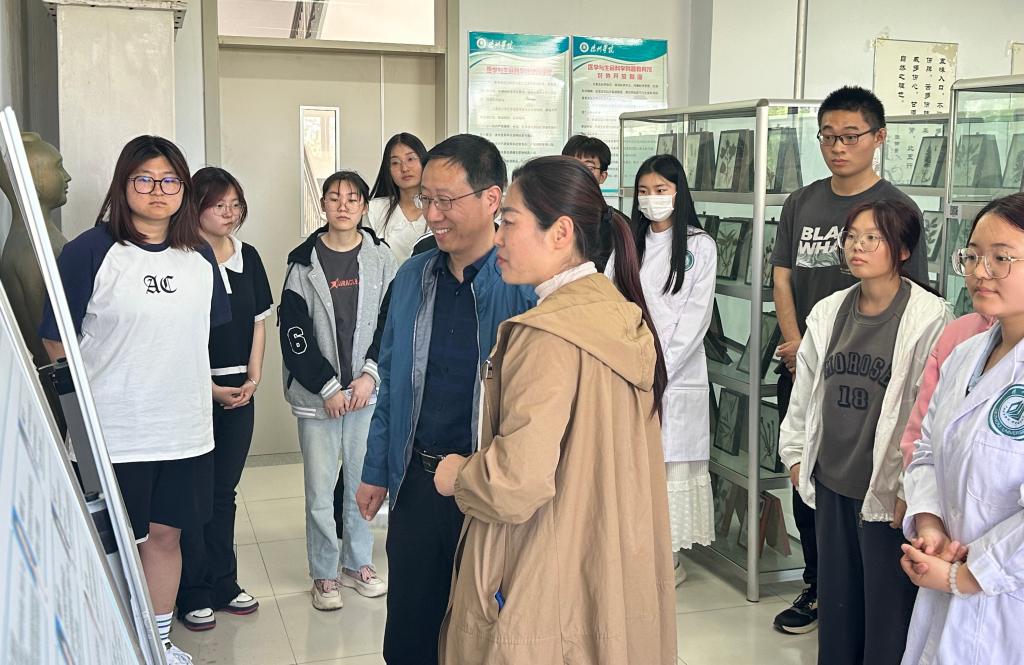 在参观过程中,市商务局一行详细了解了bat365科普基地的建设情况、科普活动的开展情况以及科普资源的整合与利用情况,观看了历次科普讲座、科普展览、科技创新大赛等,以及这些活动的受众和影响等情况,并就如何更好地发挥科普基地的作用与医药与护理学院的负责人进行了深入探讨。
