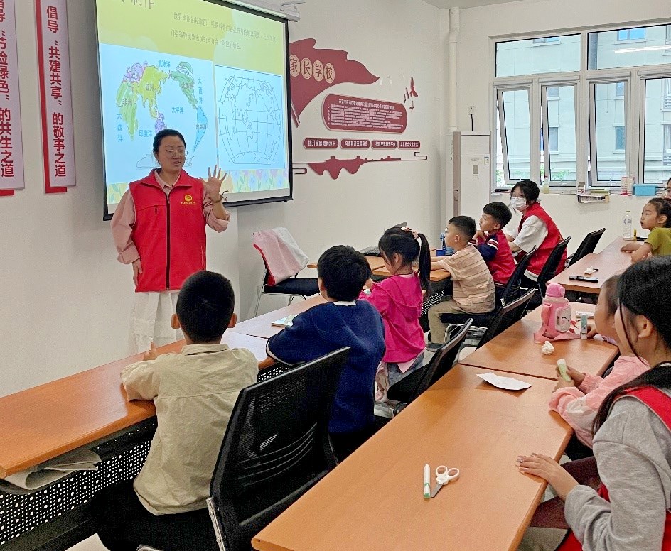 活动过程中,志愿者们结合中国国家地理中展示的各类自然现象,通过PPT和小视频给小朋友们进行科普,激发小朋友们对未知事物的探索欲望,帮助他们了解相关地理知识。同时,开展地理奇观动手小游戏,志愿者们为小朋友们提供世界地图的轮廓图,并引导他们给各类神奇的地理现象出现的地方涂上对应的颜色。这一环节不仅提高了小朋友们的参与性,也让他们对地理现象有了更深刻的理解。