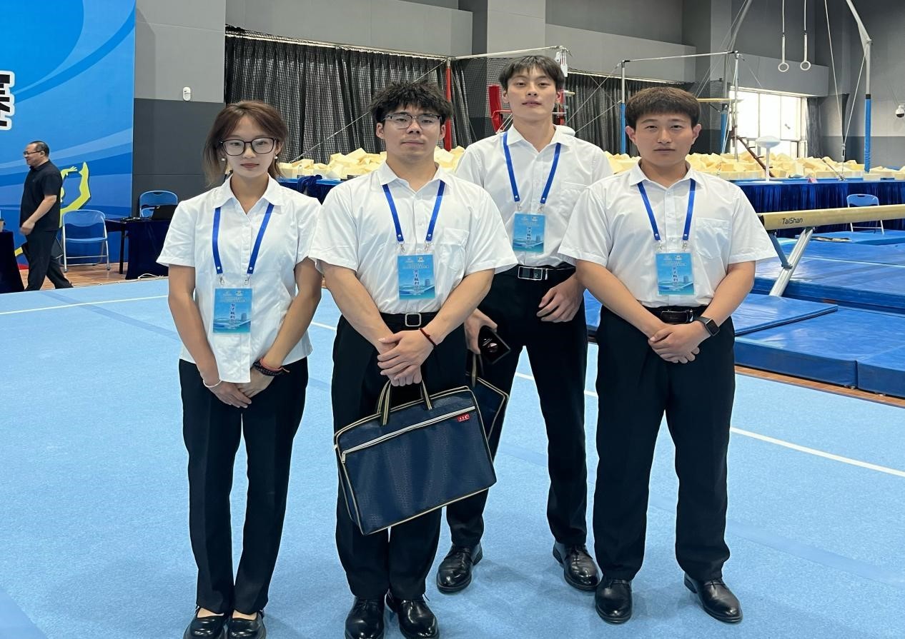 本次山东省体操锦标赛中体育学院体操裁判时刻保持高度的专业性和责任感,确保比赛的公平、公正和准确。通过本次活动,裁判员们在赛事参与的过程中锻炼了专业能力与组织能力,展现了体育学子积极向上的精神风貌,提升了所学专业知识的应用能力。