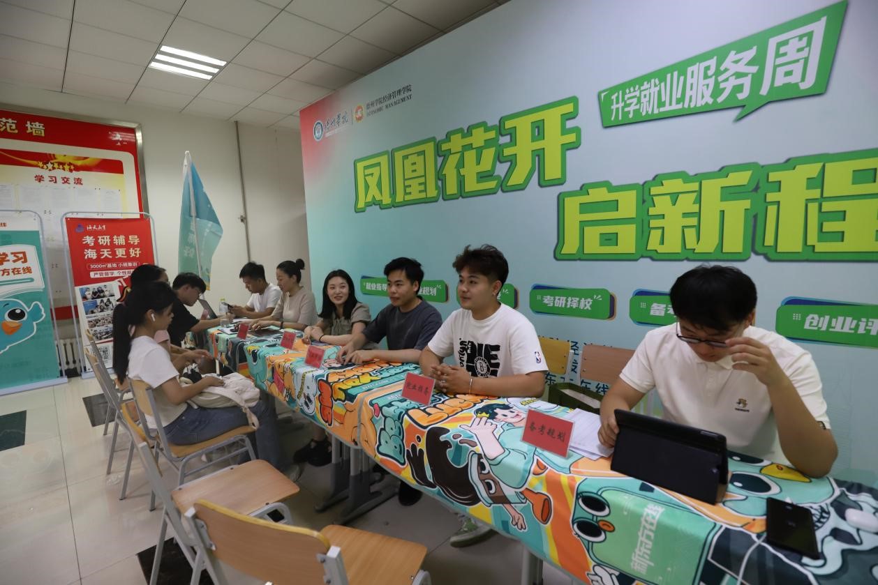 活动内容包括就业指导、职业规划、出国留学、考研择校、备考规划、创业评估等六个部分内容,组织优秀就业指导老师、人力资源服务企业走进校园,送政策、送指导、送信息、送服务。活动现场气氛活跃,毕业生积极与导师沟通,就自己在求职创业、出国考研等方面的疑惑和老师们进行交流,职业导师对同学们的简历制作、求职技巧及创业帮扶、创业规划等进行现场指导。