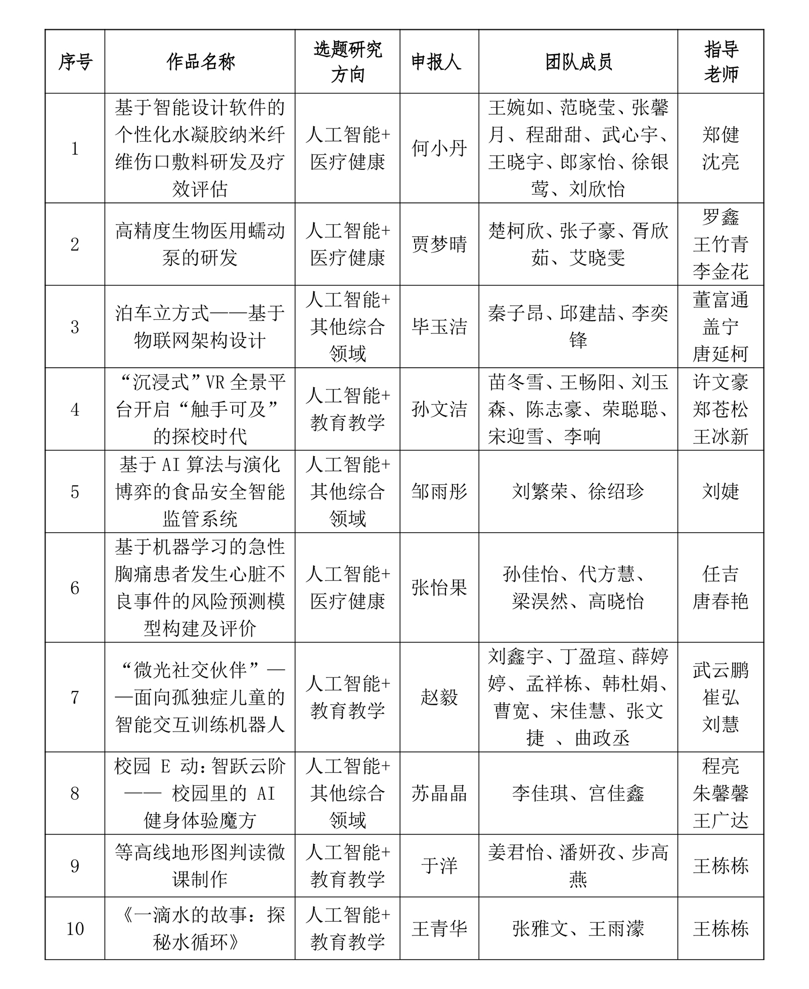 根据第十九届“挑战杯”全国大学生课外学术科技作品竞赛“人工智能+”专项赛相关通知要求,经团队申报、学校审核,拟推荐以下10个项目参加“人工智能+”应用赛,现予以公示。