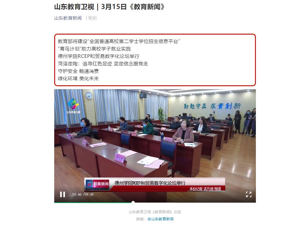 【山东教育卫视】bat365在线唯一官网登录RCEP和贸易数字化论坛举行