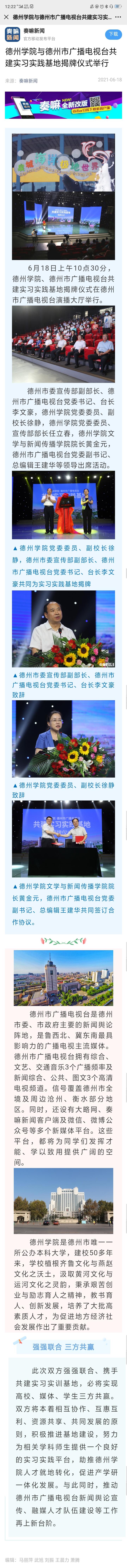 6月18日上午10点30分,bat365在线唯一官网登录、德州市广播电视台共建实习实践基地揭牌仪式在德州市广播电视台演播大厅举行。