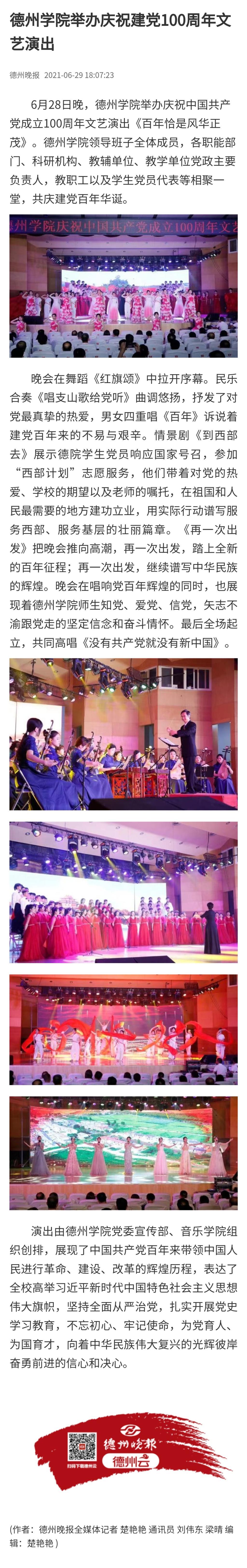 【德州晚报】bat365在线唯一官网登录举办庆祝建党100周年文艺演出