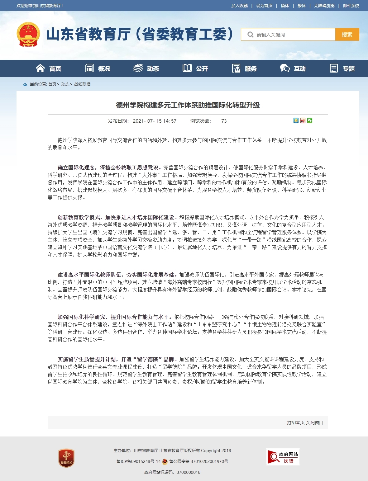 【山东省教育厅】bat365在线唯一官网登录构建多元工作体系助推国际化转型升级