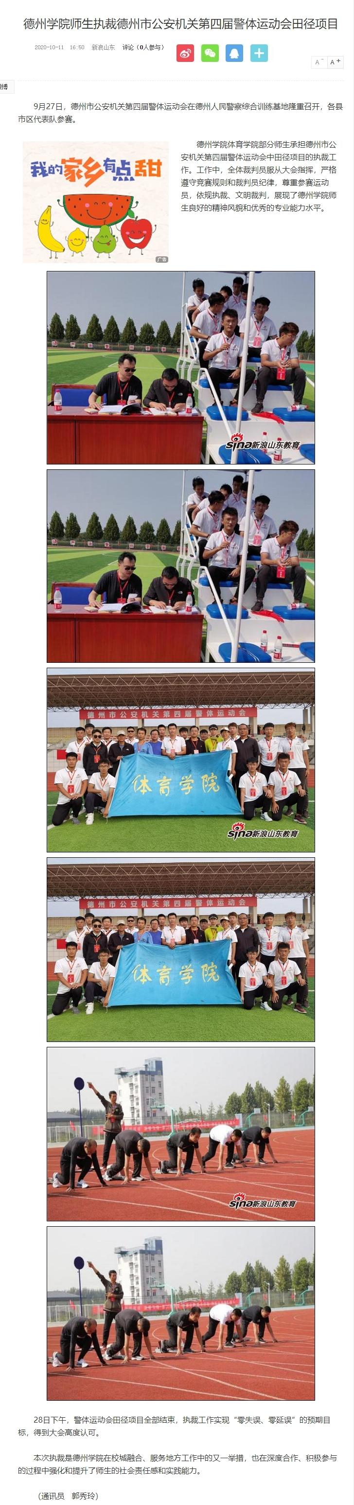 【新浪网】bat365在线唯一官网登录师生执裁德州市公安机关第四届警体运动会田径项目
