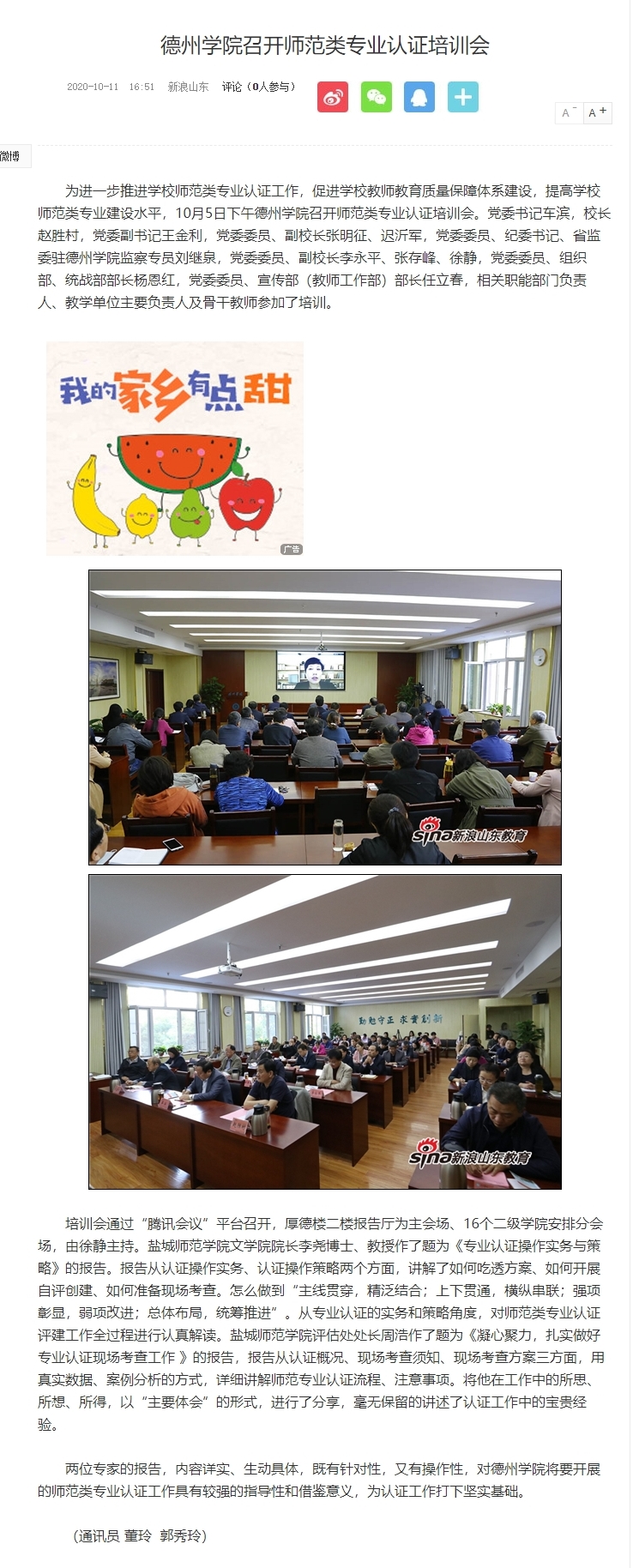 【新浪网】bat365在线唯一官网登录召开师范类专业认证培训会